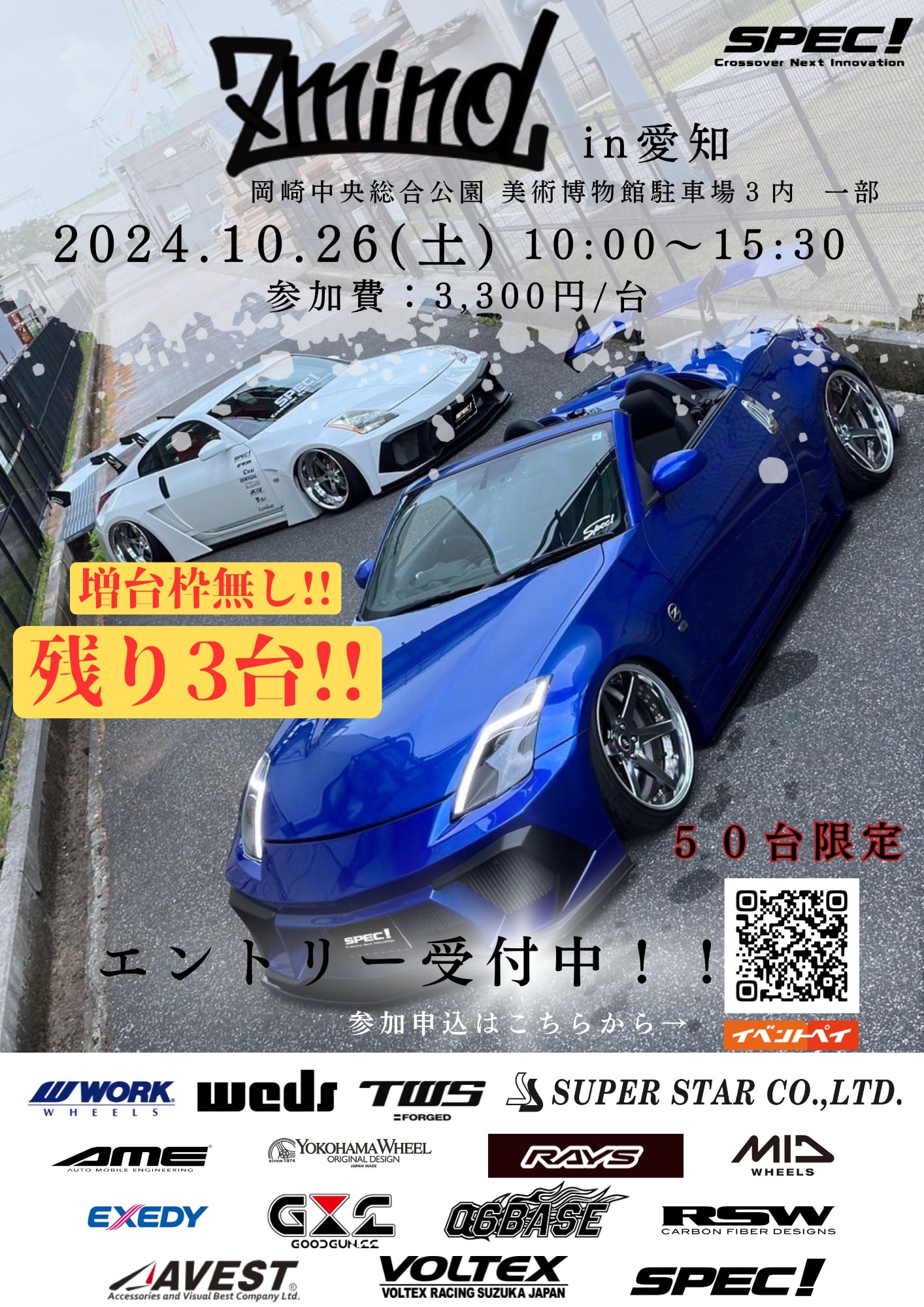 開催場所:国営木曽三川公園 木曾三川公園センター 長良川河川敷第1駐車場北側 SPEC!参加します! イベント詳細はコチラ → https://mg.i-car.jp/event_detail/1074/