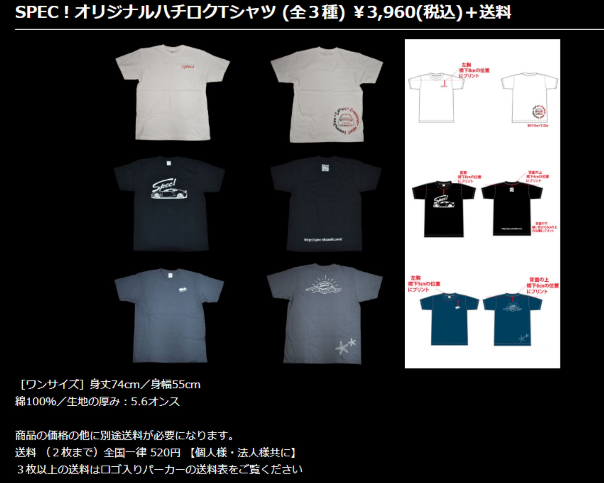 | 2023/6/6 | SPEC!オリジナルハチロクTシャツ 全3種 販売中です!